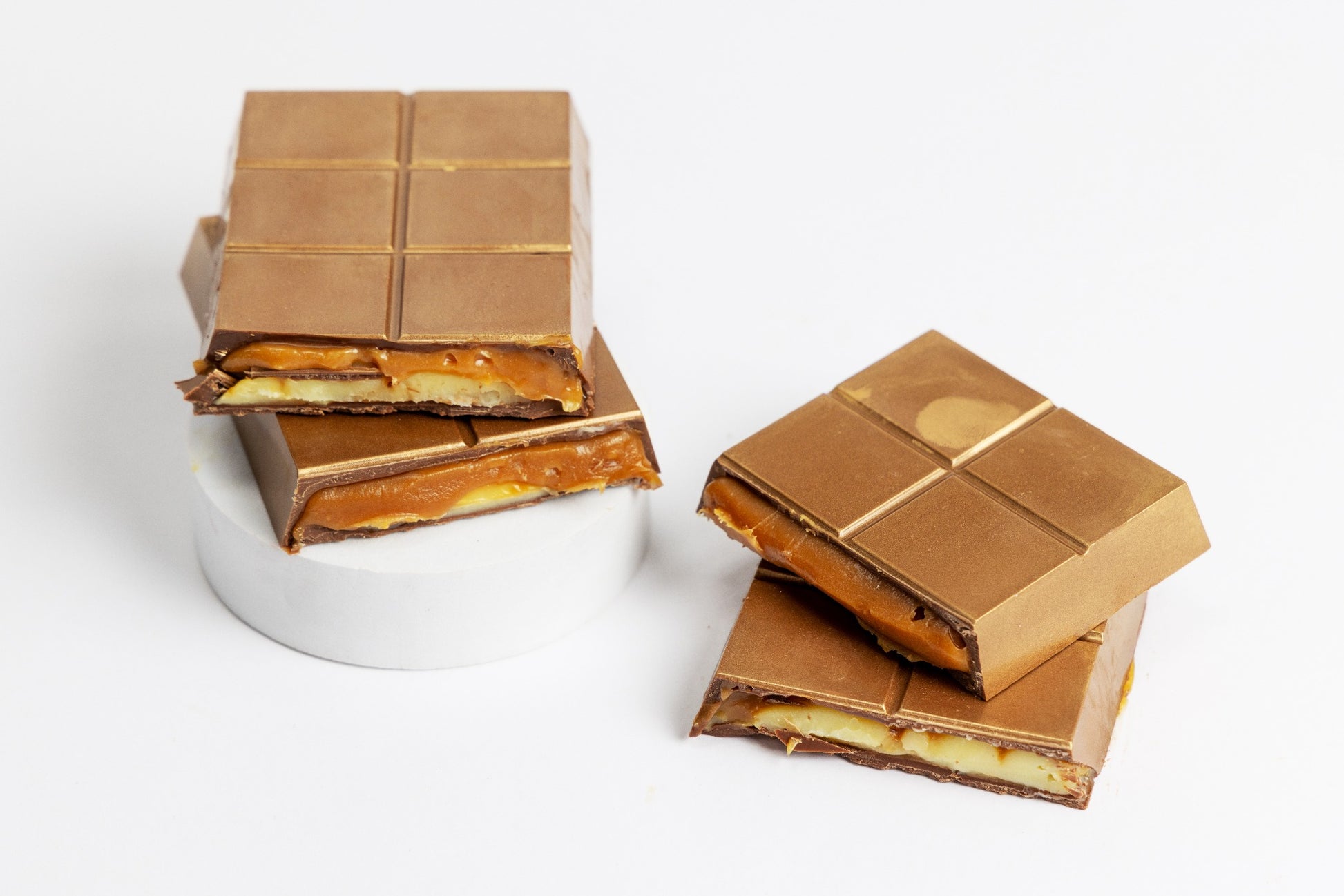 قطعة شوكولاتة بالحليب مصنوعة يدويًا ومحشوة بالكراميل الذهبي وكريمة دريم المصنوعة من الكاسترد الحريري. هذه القطعة مخصصة لجميع عشاق الحلويات الذين يحبون مزج أفضل ما في العالمين في قطعة واحدة.