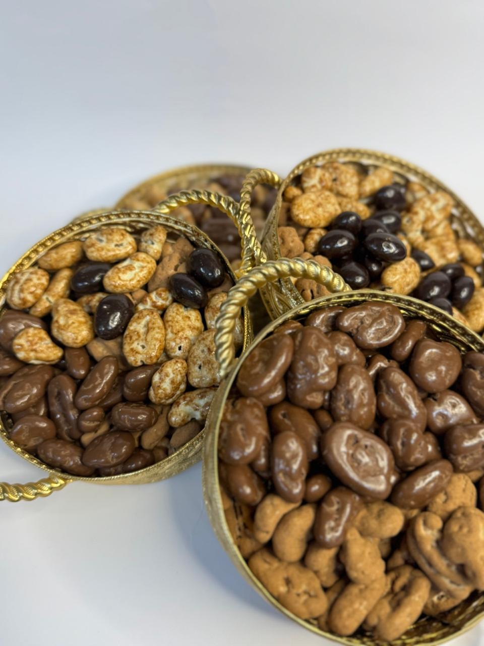 حلوى اللوز بالشوكولاتة الداكنة : لوز فاخر مغطى بالشوكولاتة الداكنة الغنية بمضادات الأكسدة.