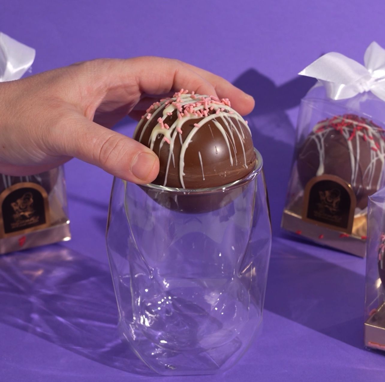 صبّ الحليب الساخن على الكرة وشاهدها تذوب، وتطلق الكاكاو الغني والمارشميلو. تجربة دافئة ولذيذة في انتظارك! ☕🍫